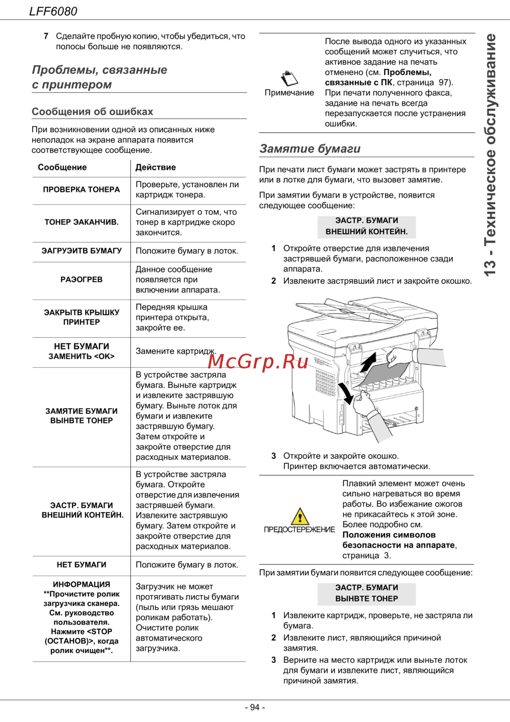 Philips LaserMFD 6080 [100/108] Проблемы связанные с принтером