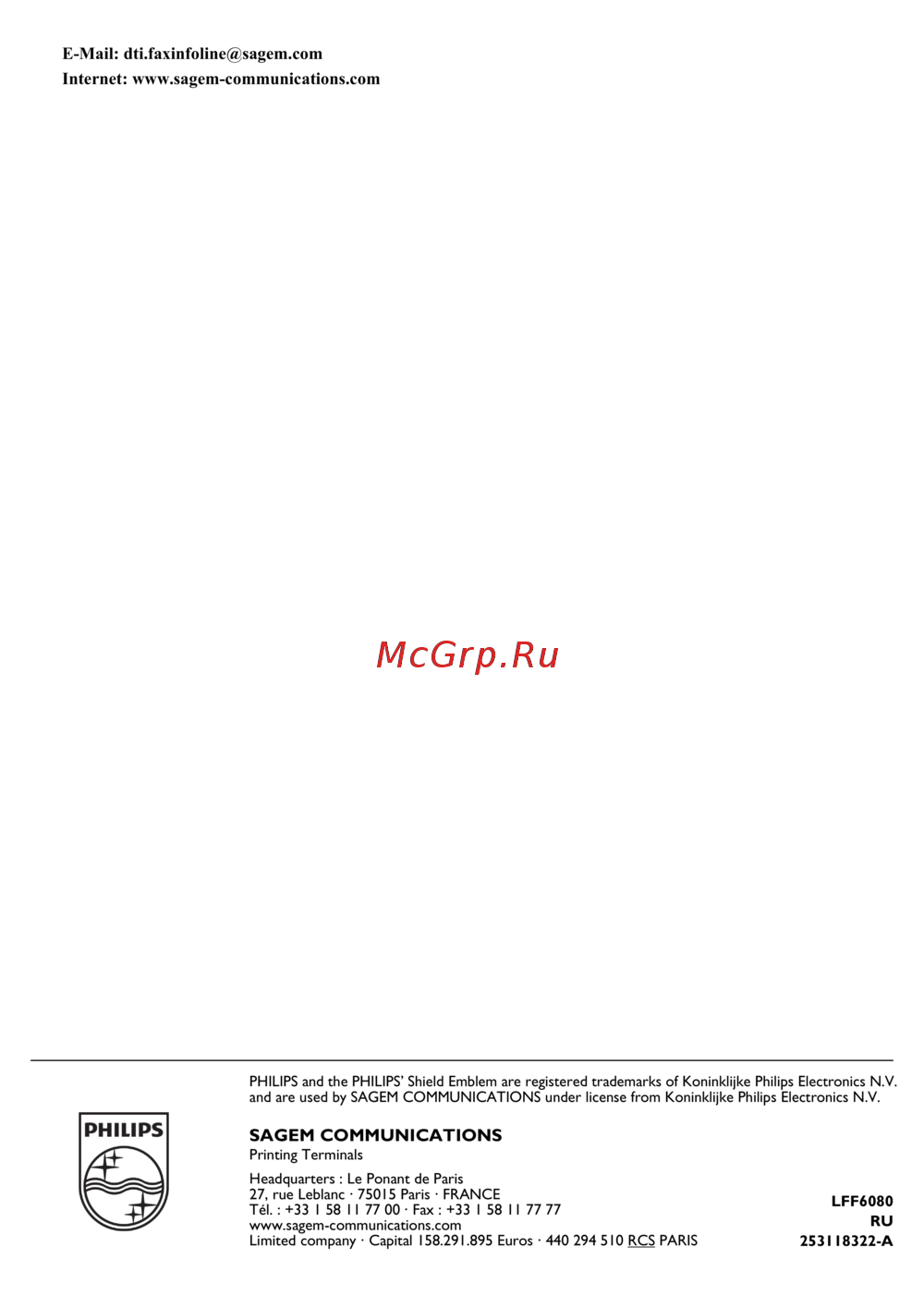 Philips LaserMFD 6080 [108/108] Sagem communications