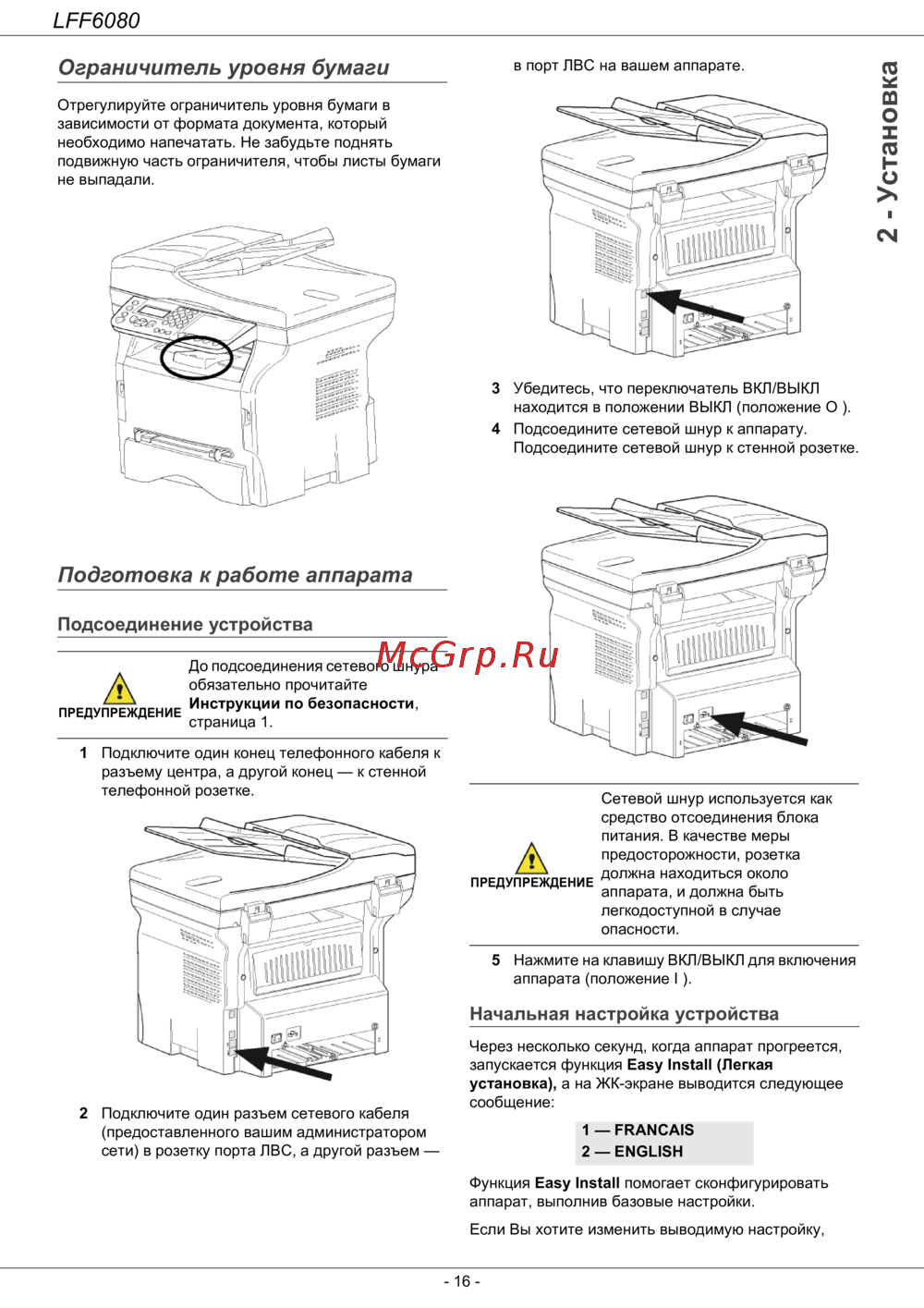 Philips LaserMFD 6080 [22/108] Начальная настройка устройства