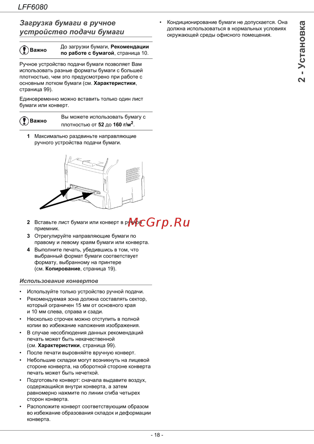 Узнайте, как правильно загружать бумагу и конверты в ручное устройство подачи. Следуйте рекомендациям для качественной печати и избегайте проблем.