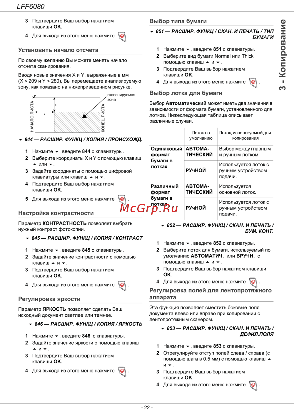 846 — РАСШИР. ФУНКЦ / КОПИЯ / ЯРКОСТЬ