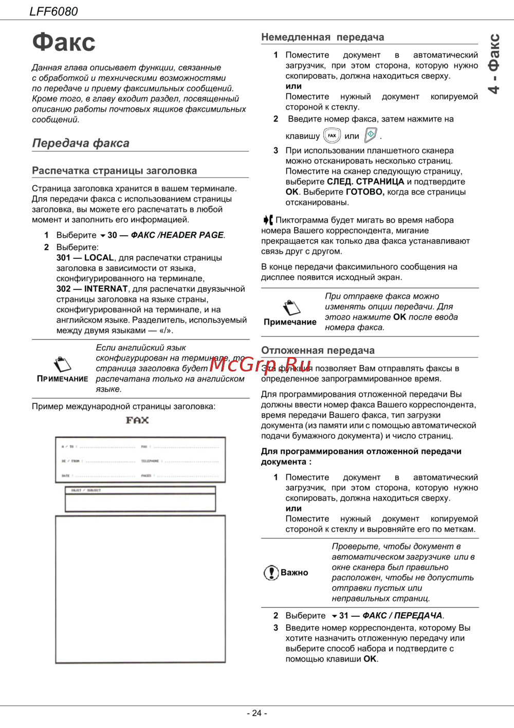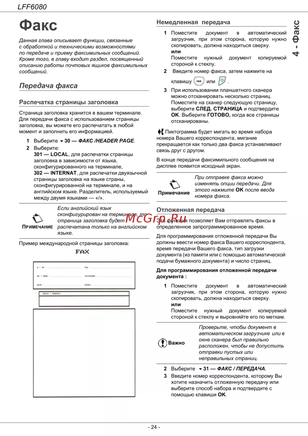 1 Выберите 30 — ФАКС /HEADER PAGE.