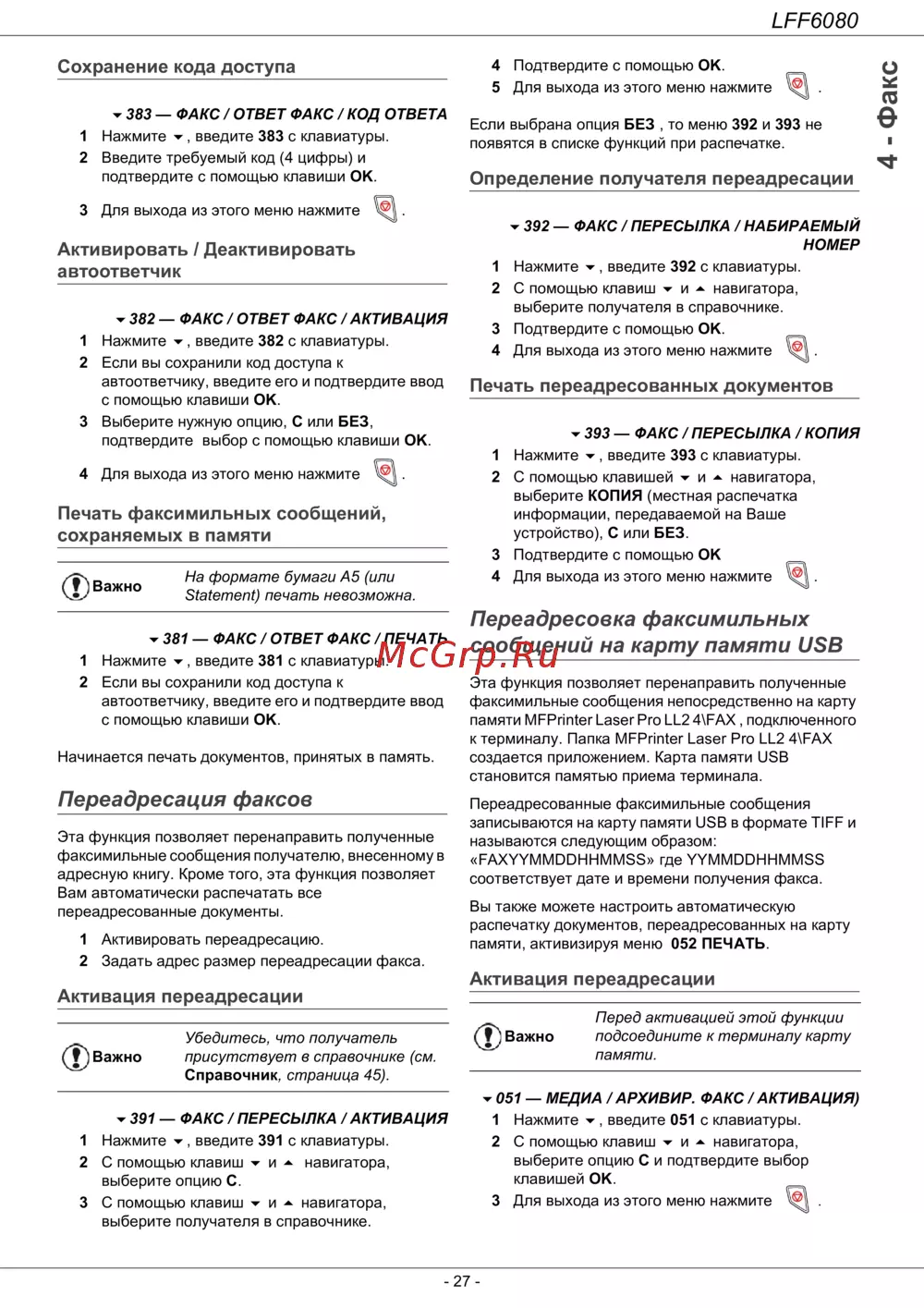 381 — ФАКС / ОТВЕТ ФАКС / ПЕЧАТЬ
