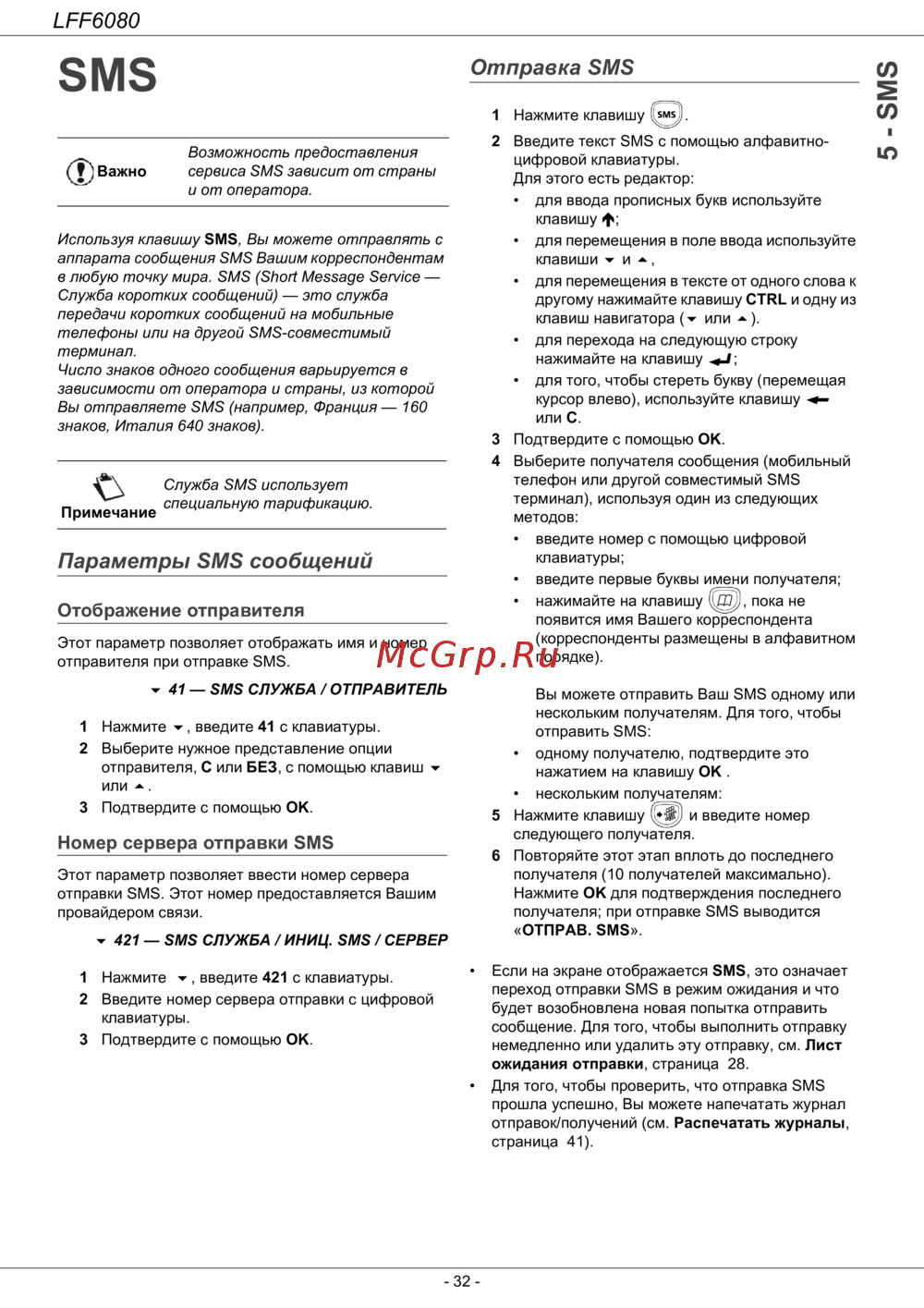 Philips LaserMFD 6080 [38/108] Параметры sms сообщений