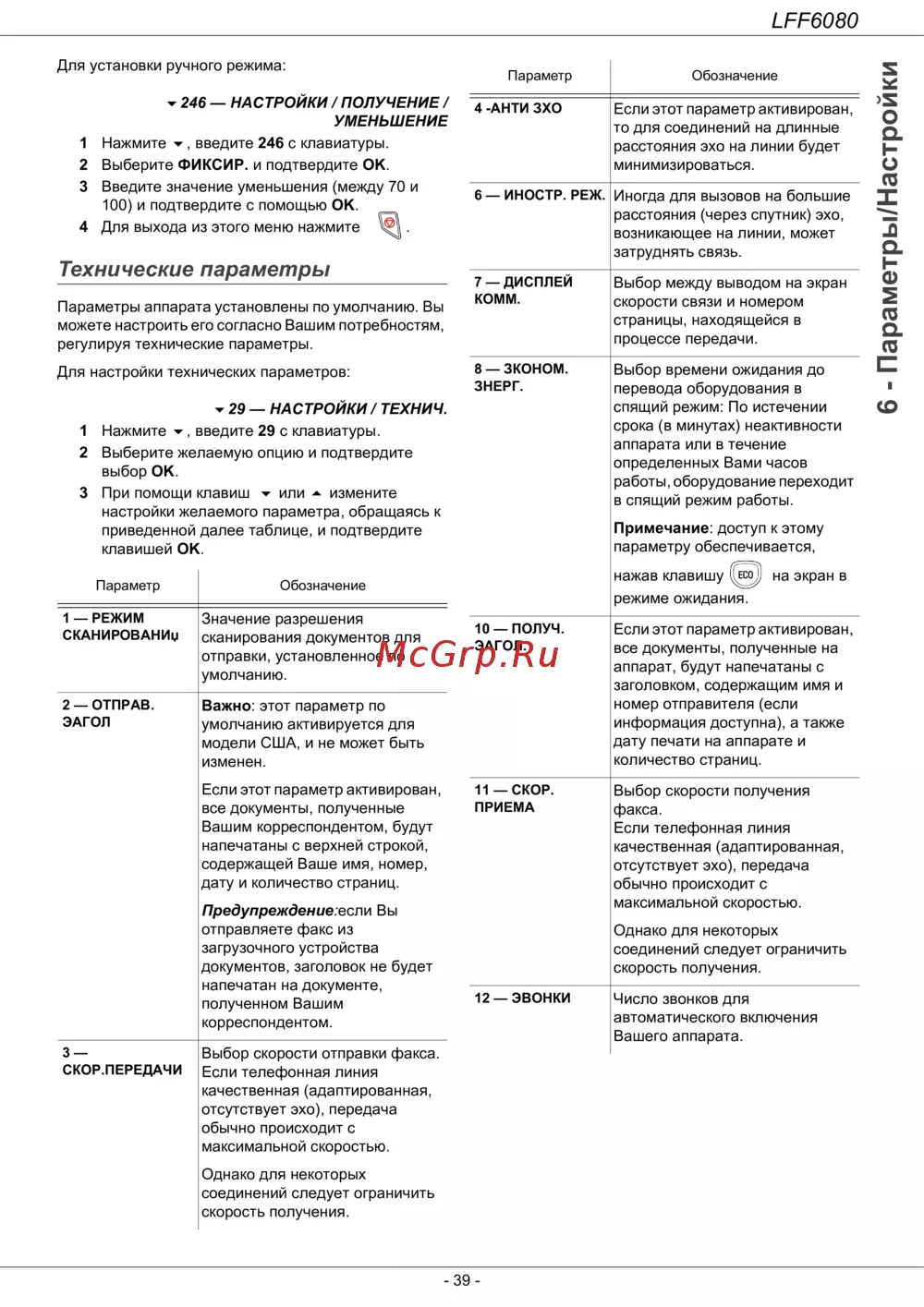 Philips LaserMFD 6080 — настройки и параметры для ручного режима факса [45/108]