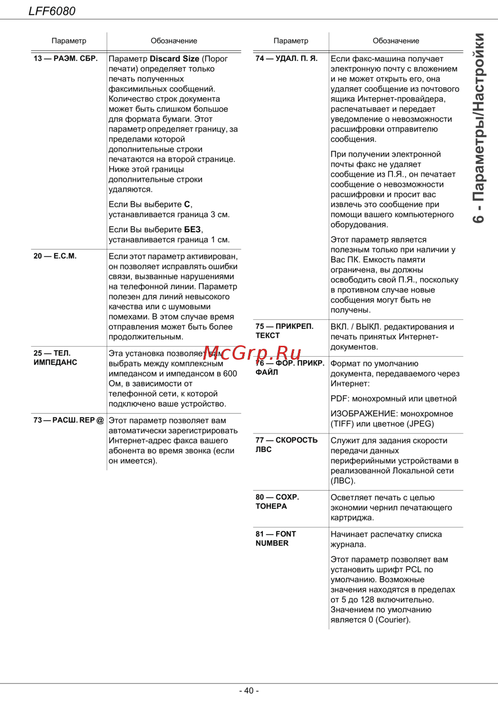 Philips LaserMFD 6080 [46/108] Параметры настройки
