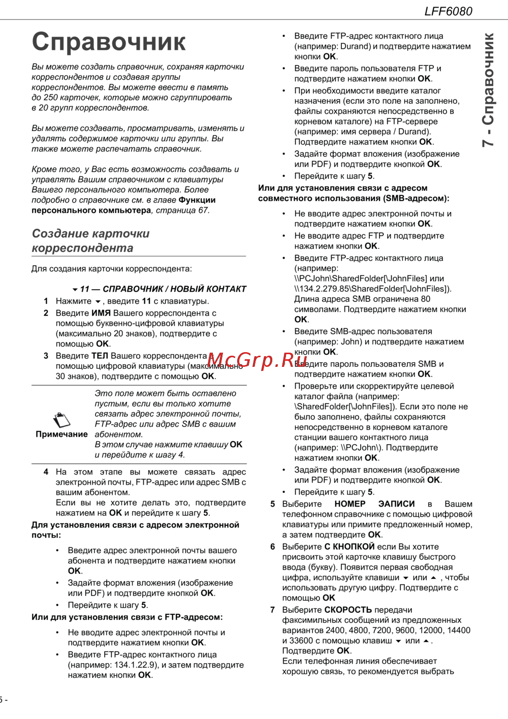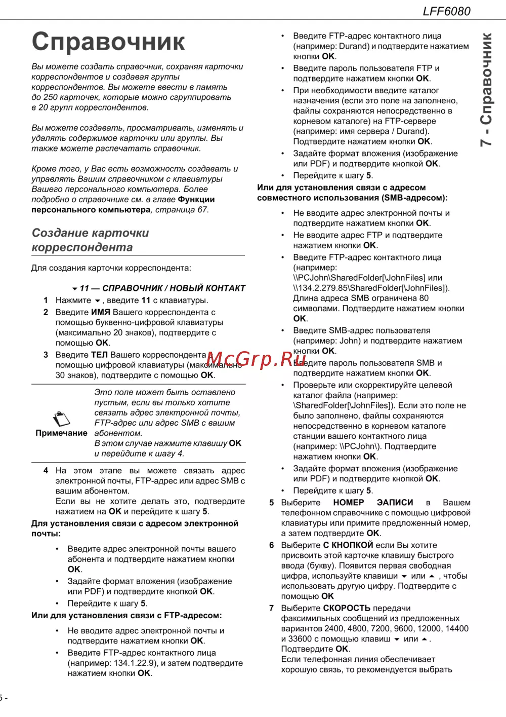 • Введите FTP-адрес контактного лица