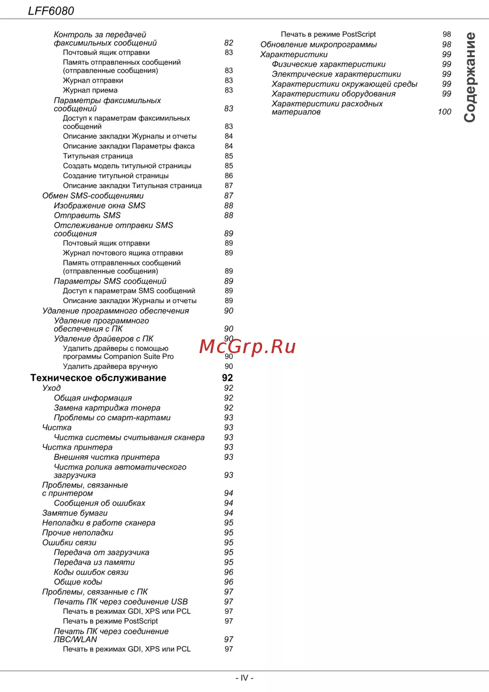 - Техническое обслуживание p.100
