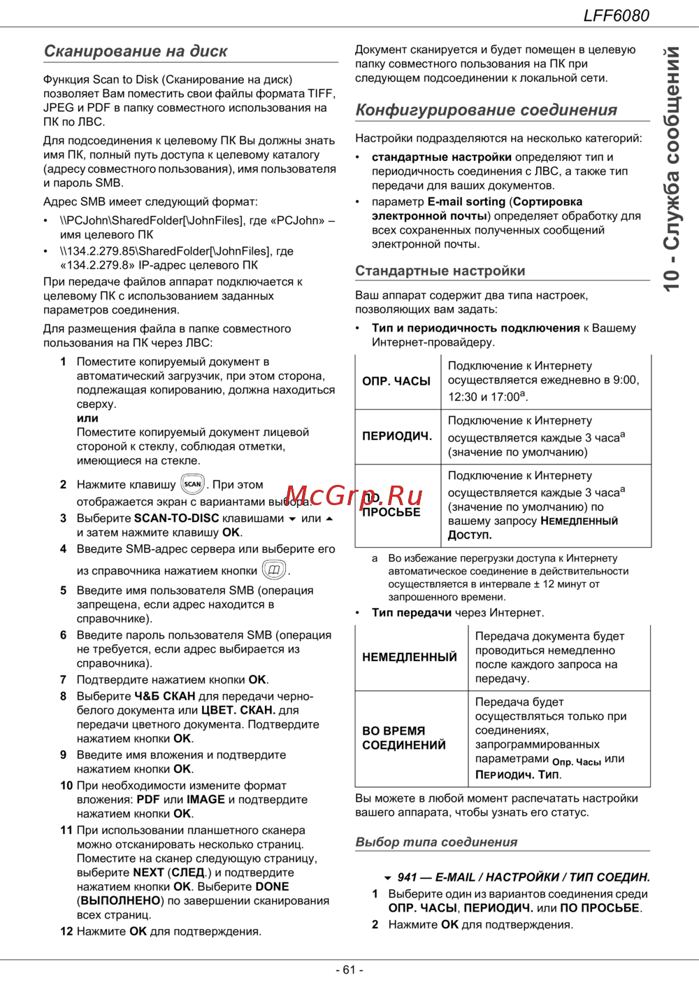 941 — E-MAIL / НАСТРОЙКИ / ТИП СОЕДИН.