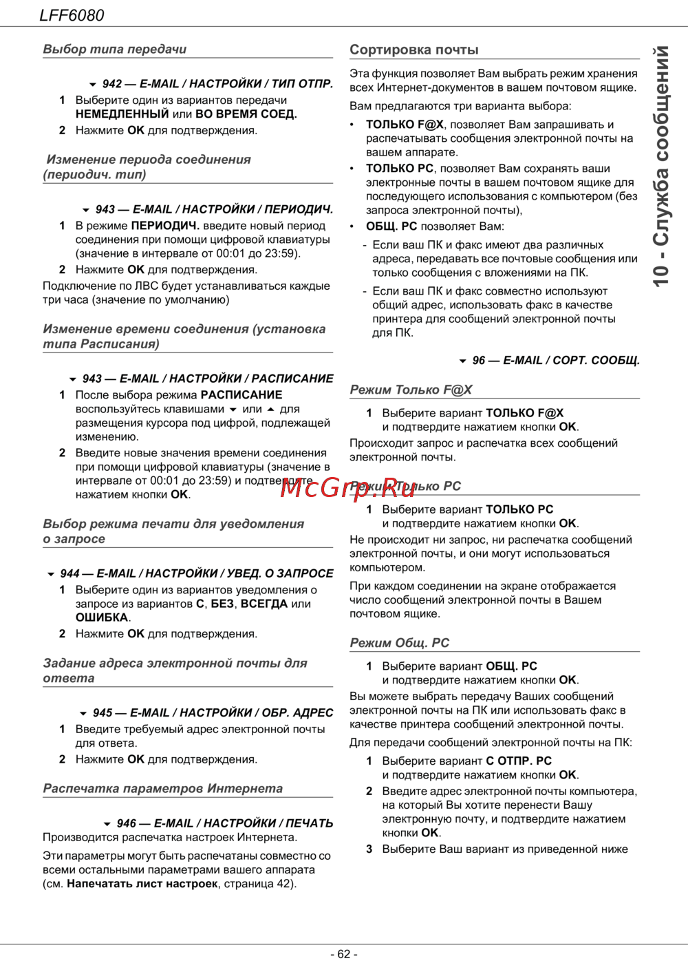 942 — E-MAIL / НАСТРОЙКИ / ТИП ОТПР.