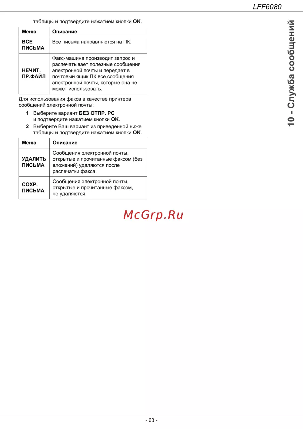 Philips LaserMFD 6080 — инструкция по использованию факса для работы с электронной почтой [69/108]
