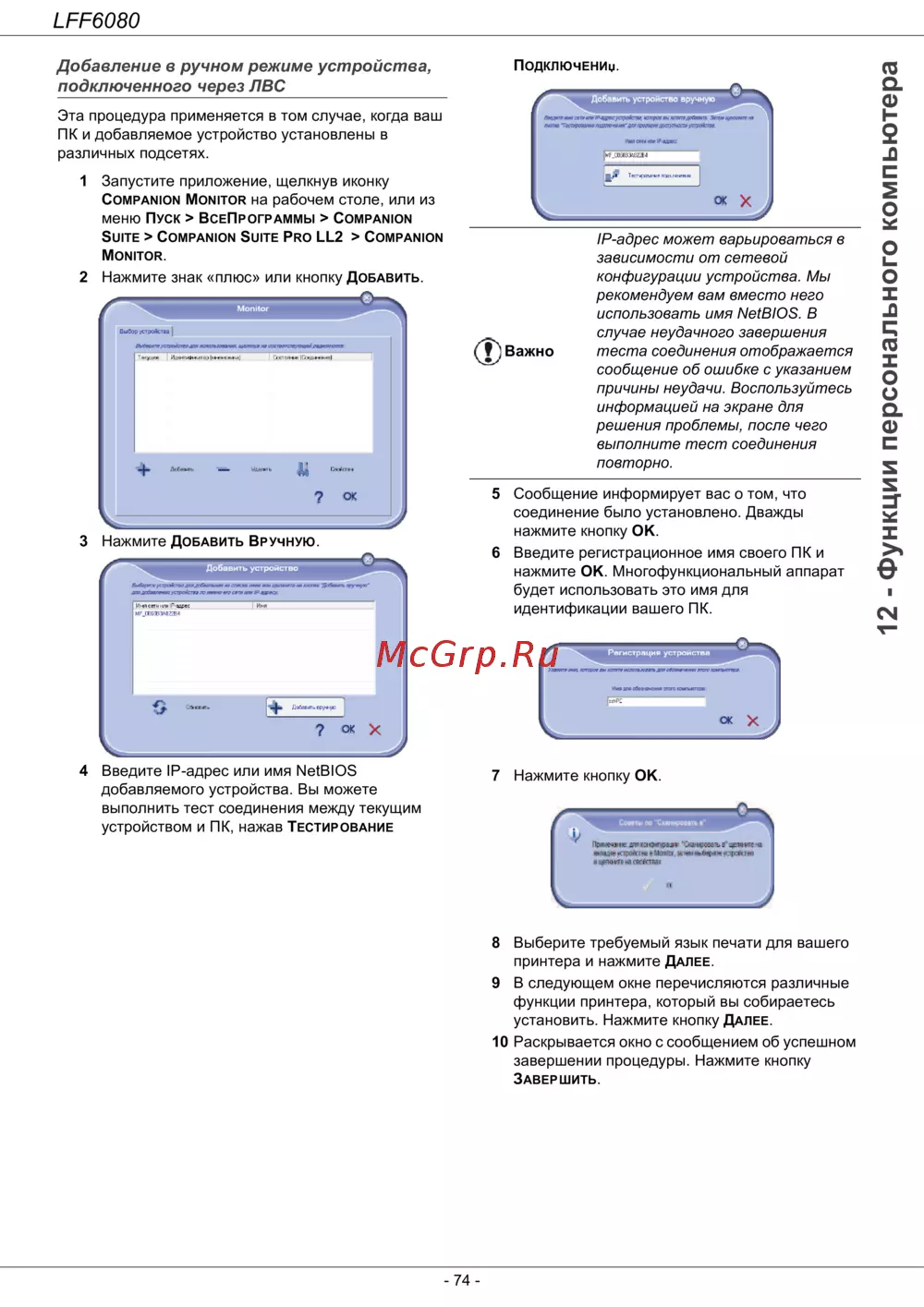 Philips LaserMFD 6080 — инструкция по добавлению устройства в сеть для ПК [80/108]