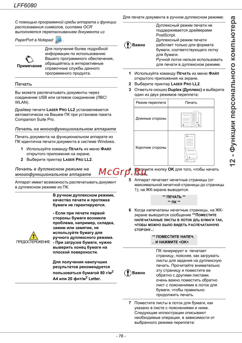 Philips LaserMFD 6080 — функции печати на многофункциональном аппарате и настройка [84/108]