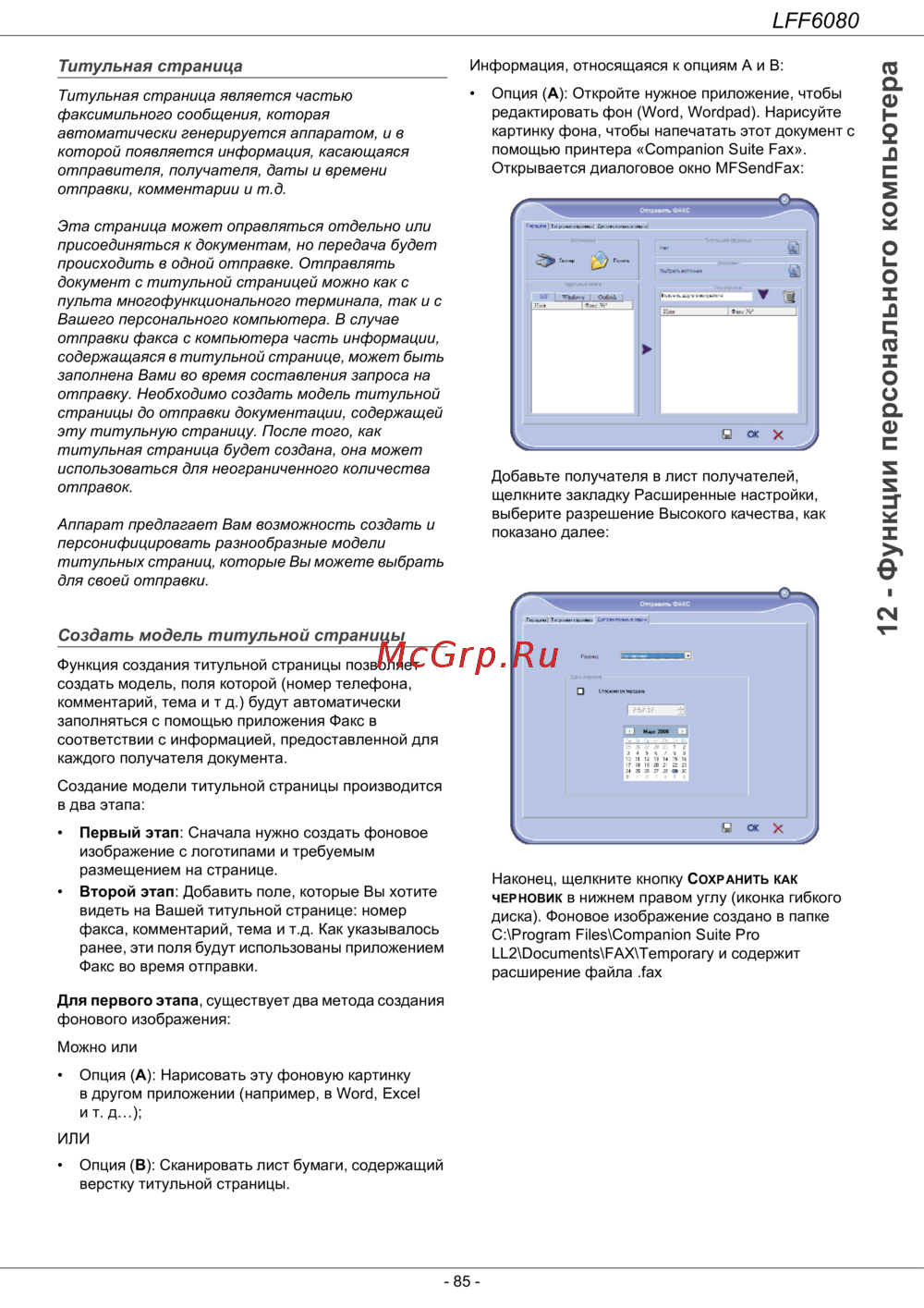 Создание и использование титульных страниц для факсимильных сообщений. Настройка полей, добавление логотипов и персонализация отправки документов с компьютера или терминала.