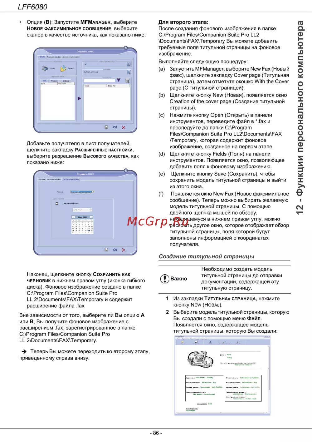 (a) Запустить MFManager, выберите New Fax (Новый
