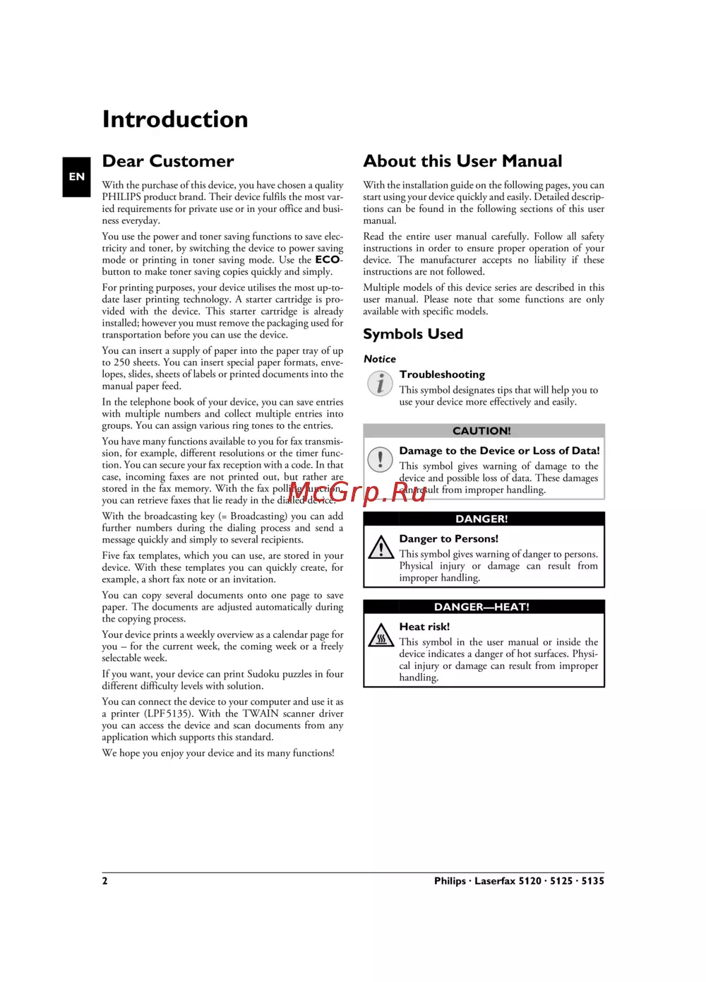 2 Philips · Laserfax 5120 · 5125 · 5135
