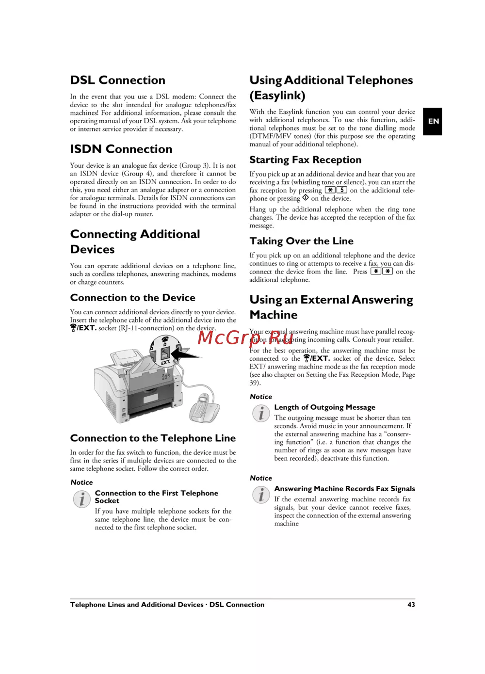Ï/EXT. socket (RJ-11-connection) on the device.