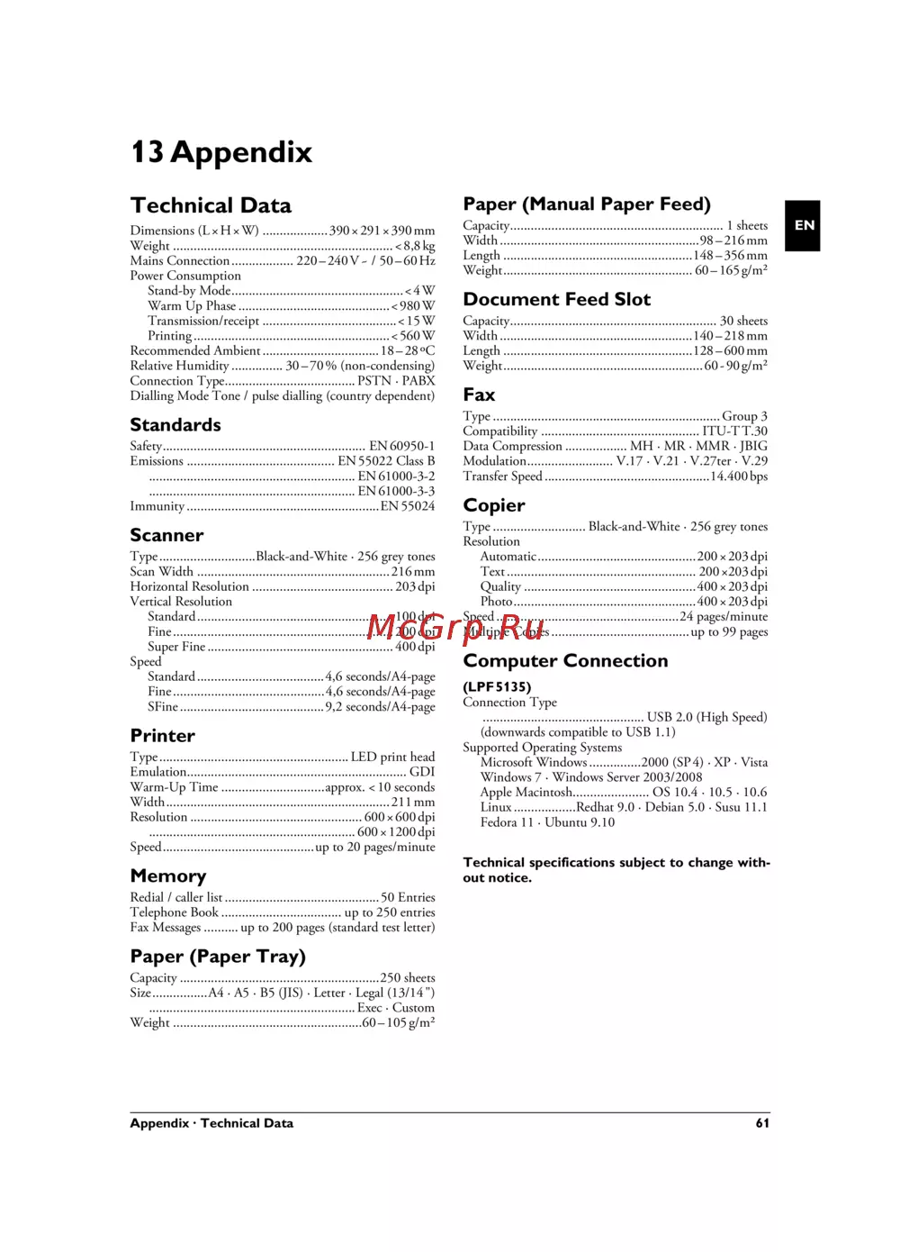 Size................A4 · A5 · B5 (JIS) · Letter · Legal (13/14¦")