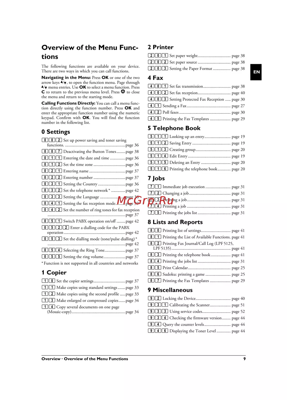 Overview · Overview of the Menu Functions 9