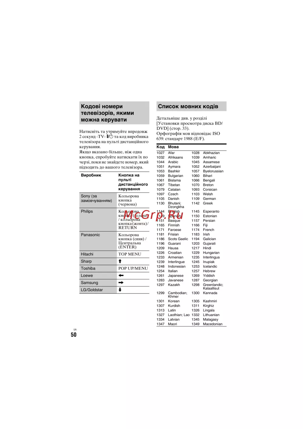- Детальніше див у розділі установки просмотра диска bd dvd стор 33 орфографія мов відповідає iso 639 стандарт 1988 e f p.102