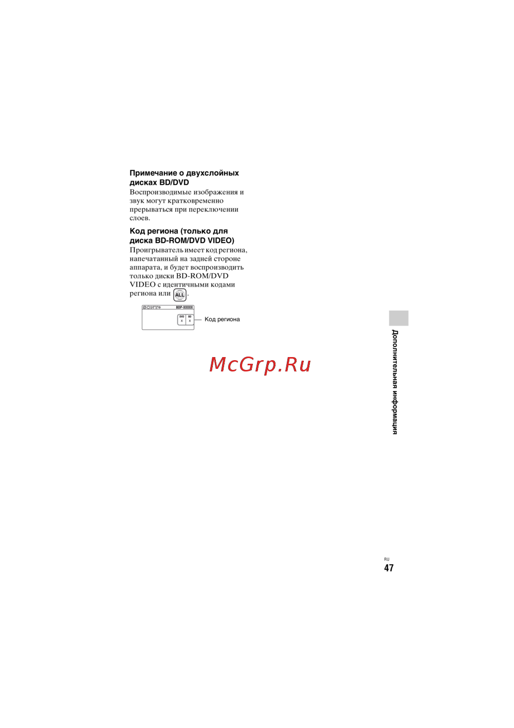 Sony BDP-S5100 [47/104] Примечание о двухслойных дисках bd dvd