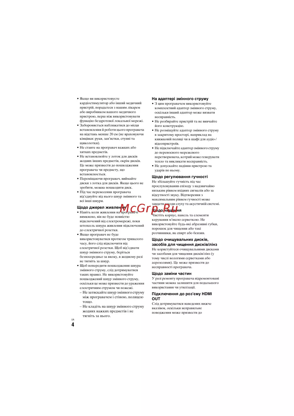 - Програвач не спрацьовує після натискання на будь які кнопки p.95