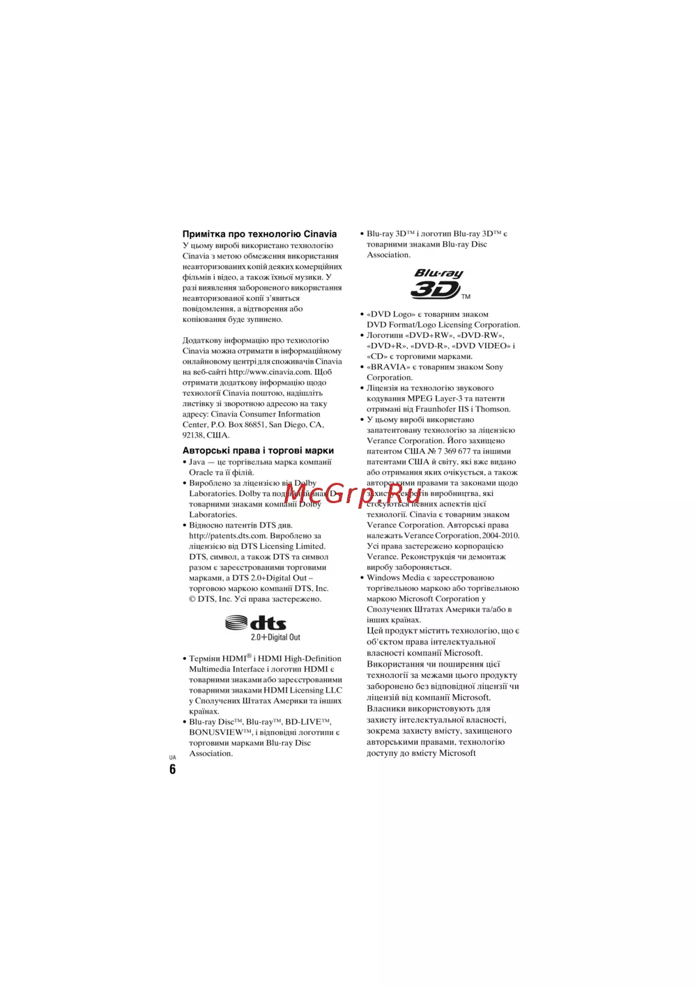 • Blu-ray 3D™ і логотип Blu-ray 3D™ є