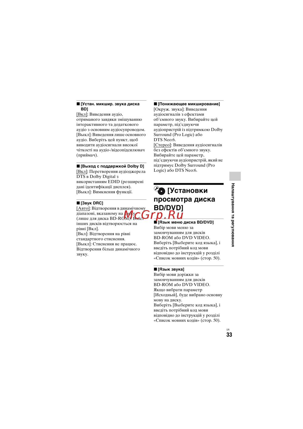 - Детальніше див у розділі установки просмотра диска bd dvd стор 33 орфографія мов відповідає iso 639 стандарт 1988 e f p.102