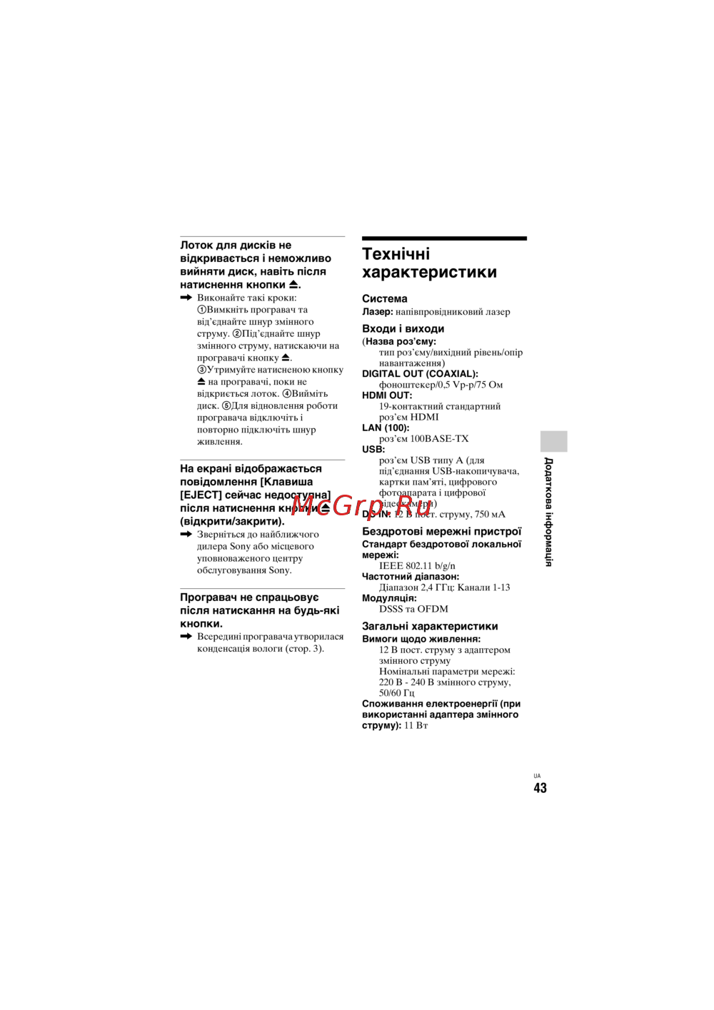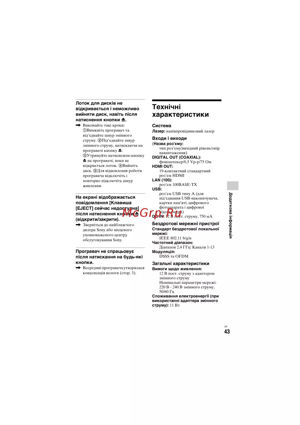 - Програвач не спрацьовує після натискання на будь які кнопки p.95