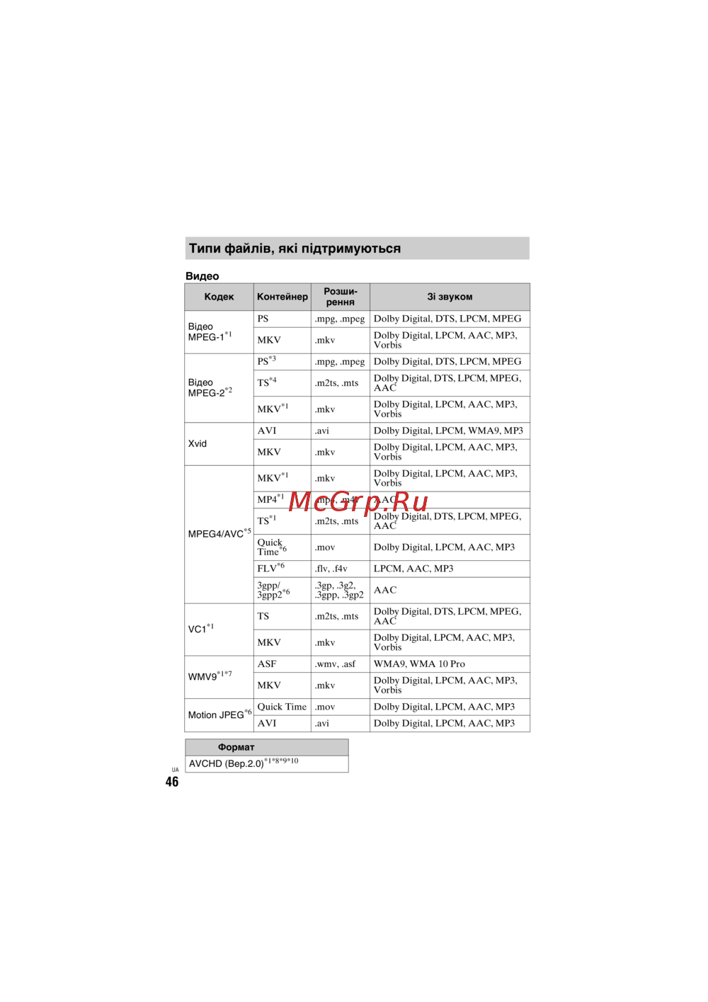 AVCHD (Вер.2.0)