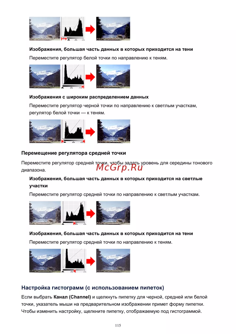 Canon PIXMA MG2440 — настройка гистограмм и тонового диапазона в изображениях [115/194]
