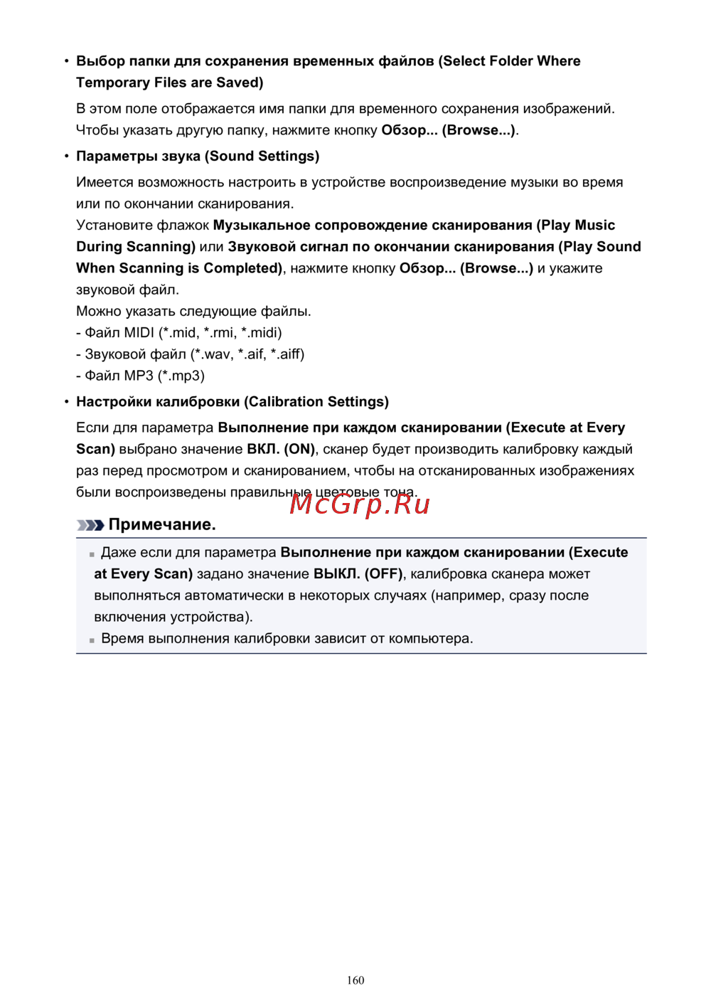 Canon PIXMA MG2440 — настройки временных файлов и звука для сканирования изображений [160/194]
