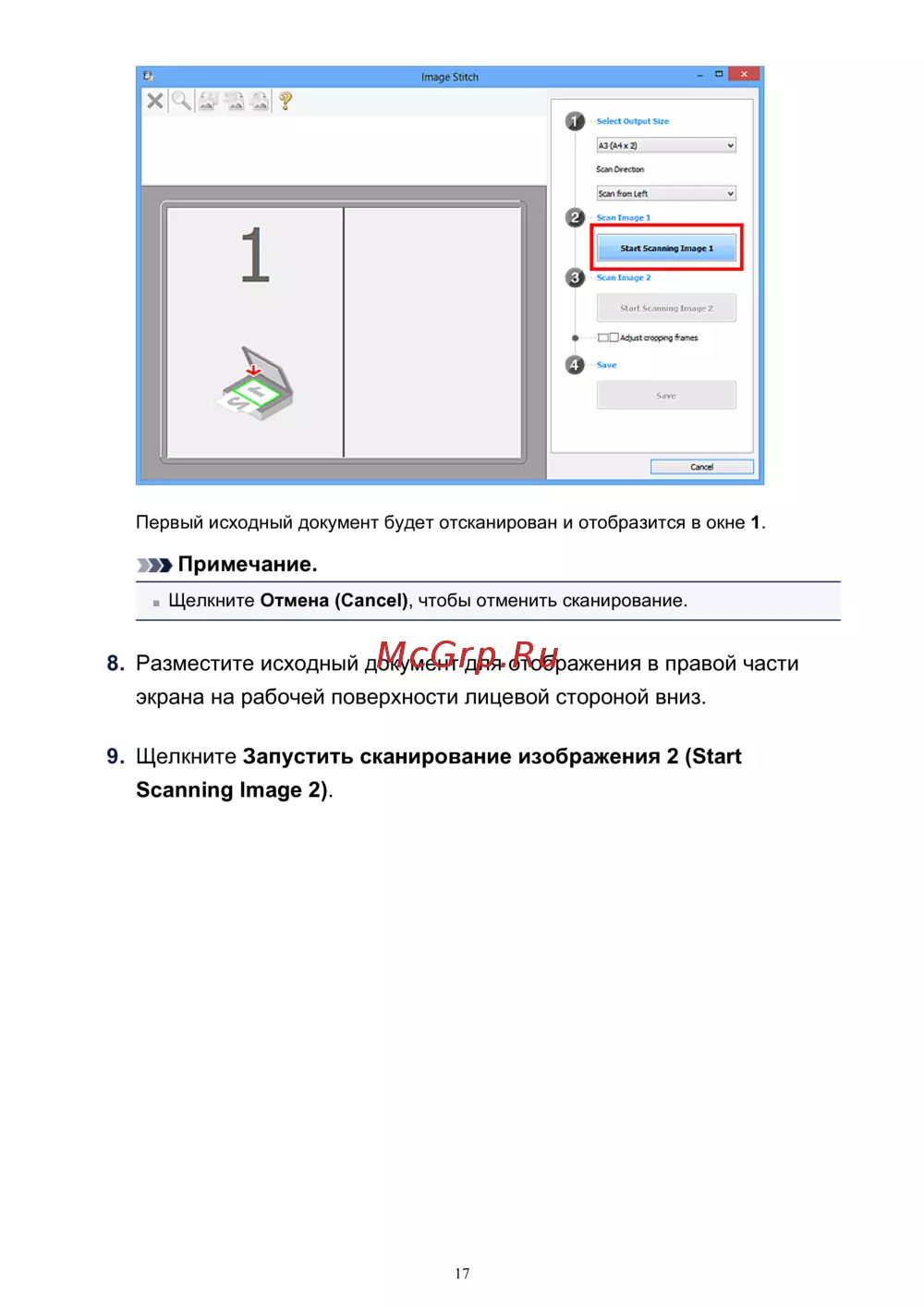 9. Щелкните Запустить сканирование изображения 2 (Start