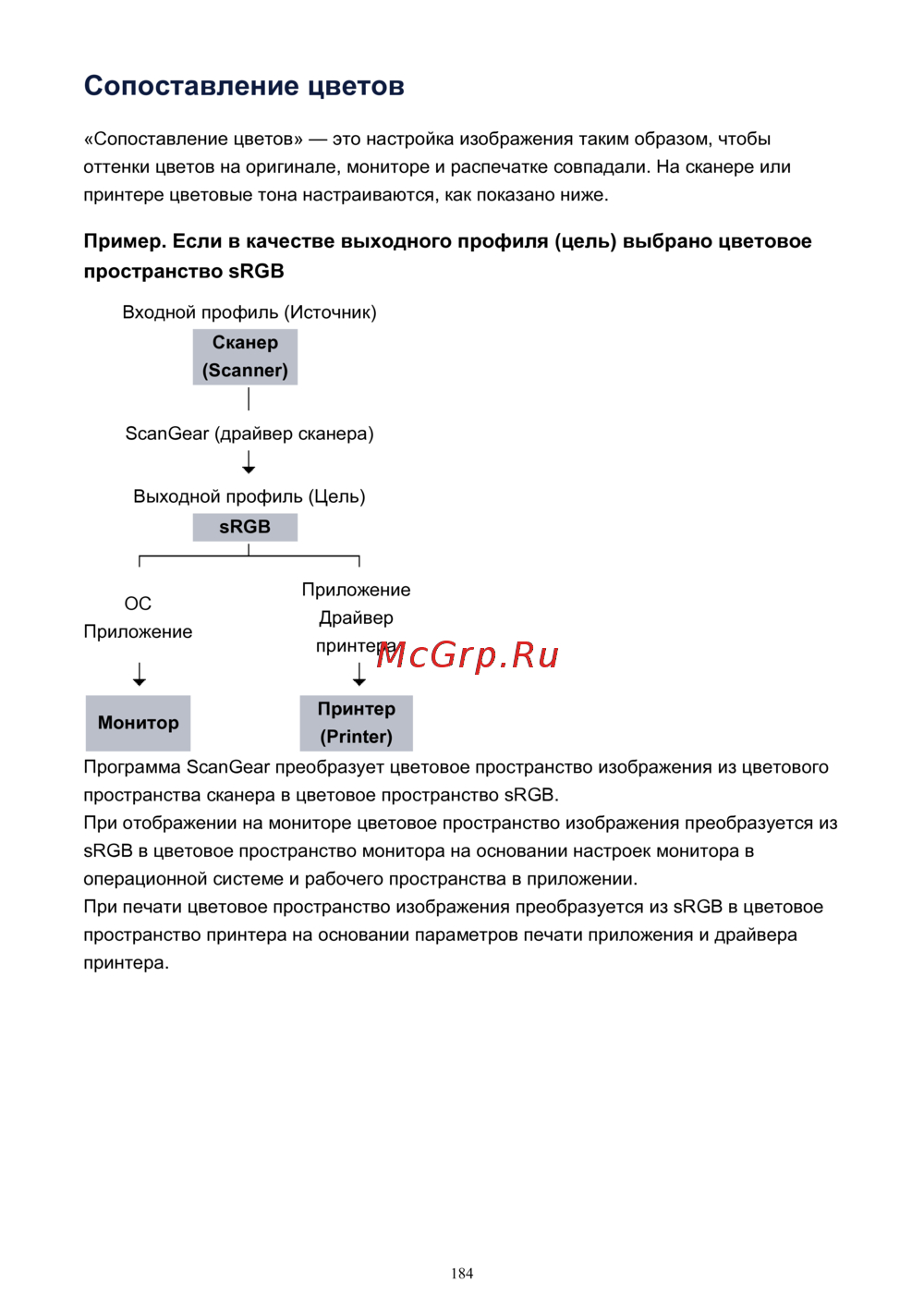 - Пример если в качестве выходного профиля цель выбрано цветовое пространство srgb p.184