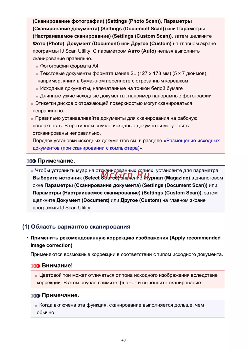 Canon PIXMA MG2440 — настройки сканирования: советы по правильному сканированию документов [40/194]