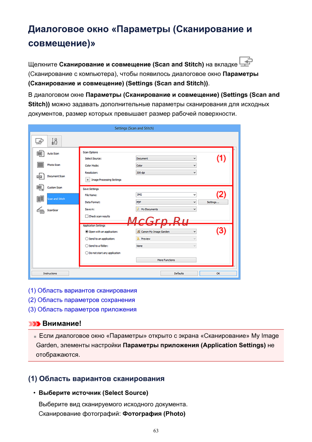 Canon PIXMA MG2440 — настройка сканирования и совмещения: параметры и области [63/194]