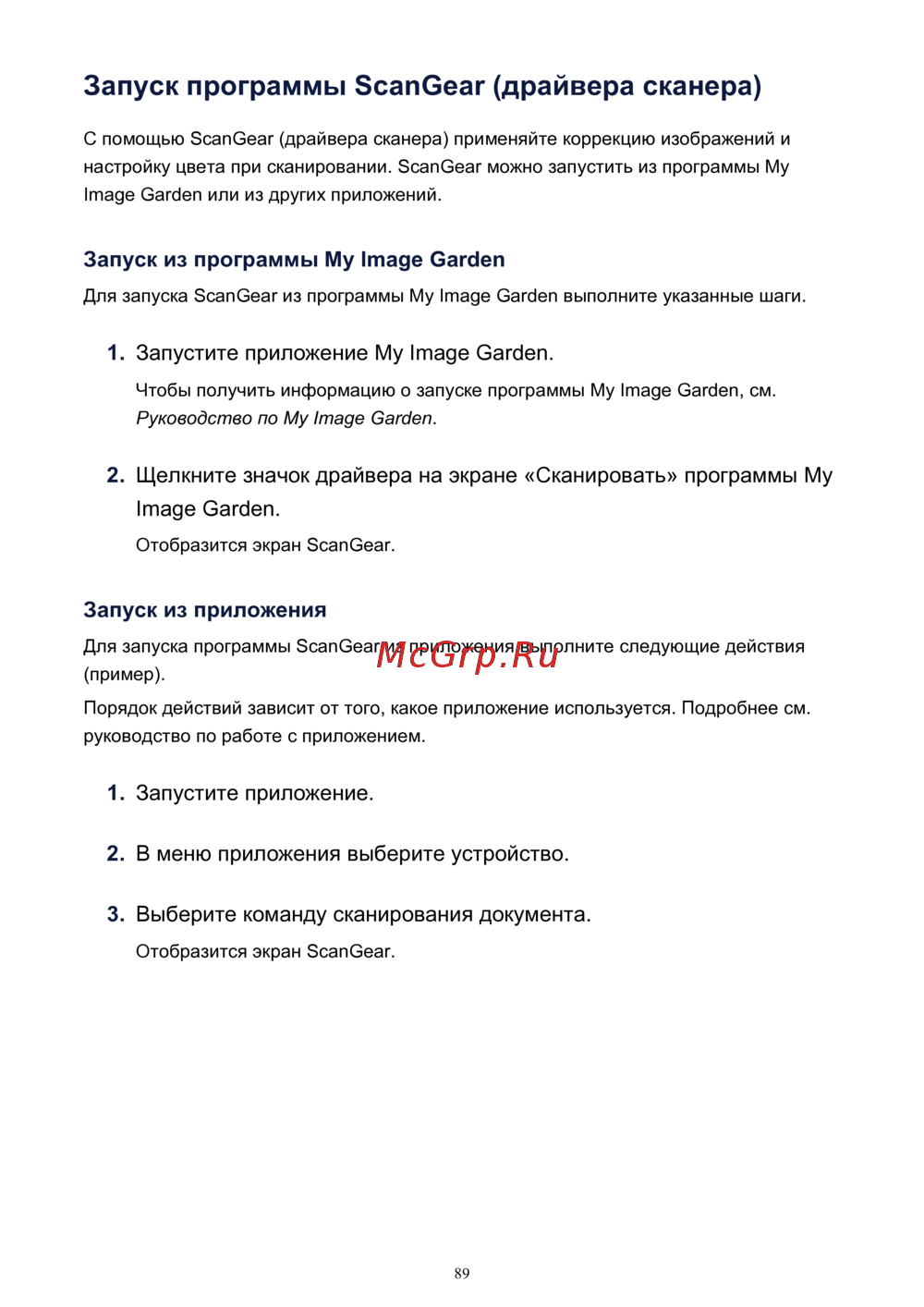 настройку цвета при сканировании. ScanGear можно запустить из программы My