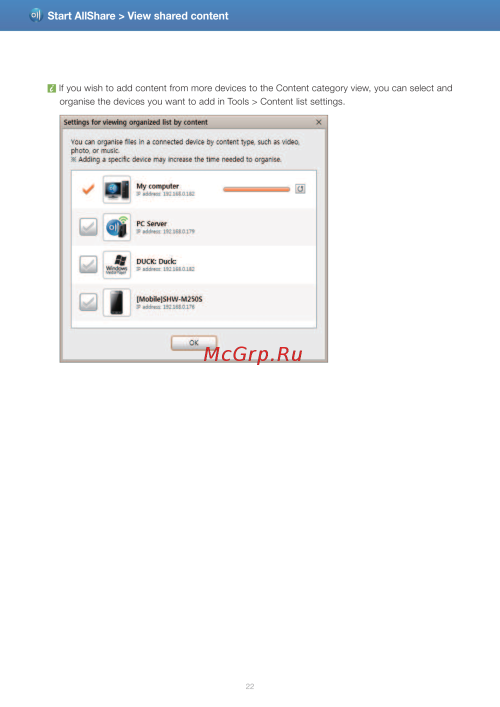 ![Samsung UE32D5000PW [22/46] View shared content](/views2/1126643/page22/bg16.png)