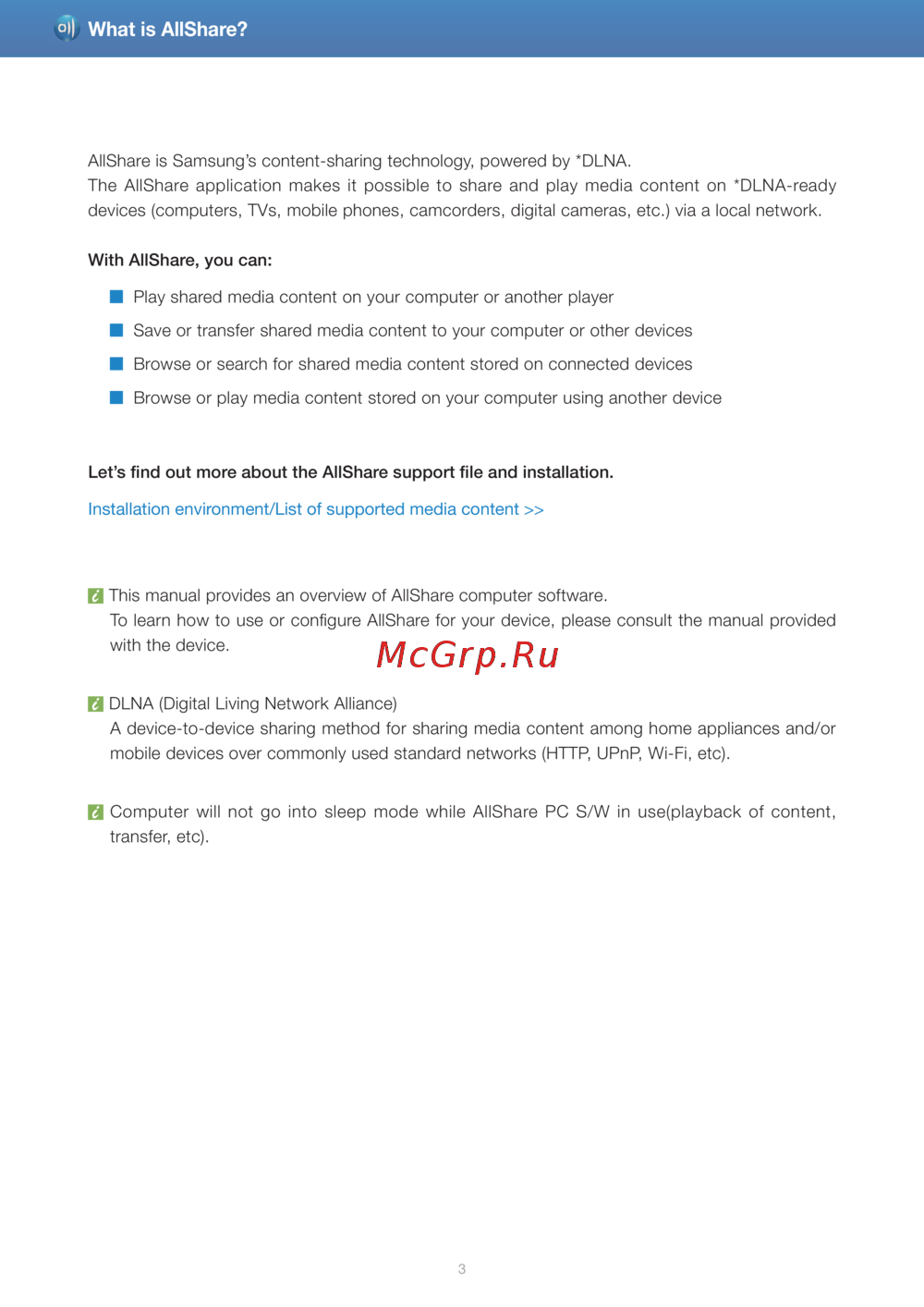 AllShare is Samsung’s content-sharing technology, powered by *DLNA.