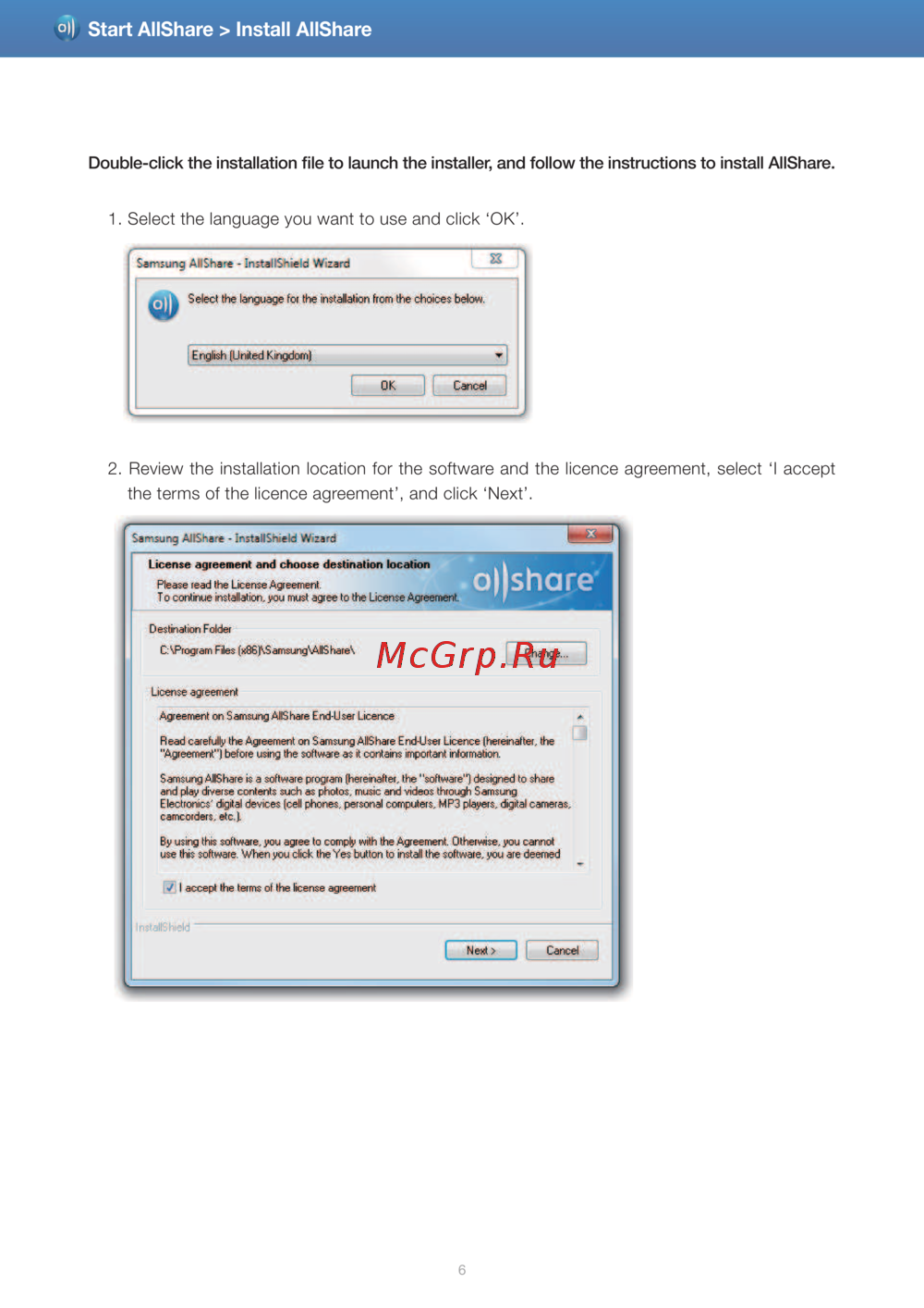Double-click the installation file to launch the installer, and follow the instructions to install AllShare.
