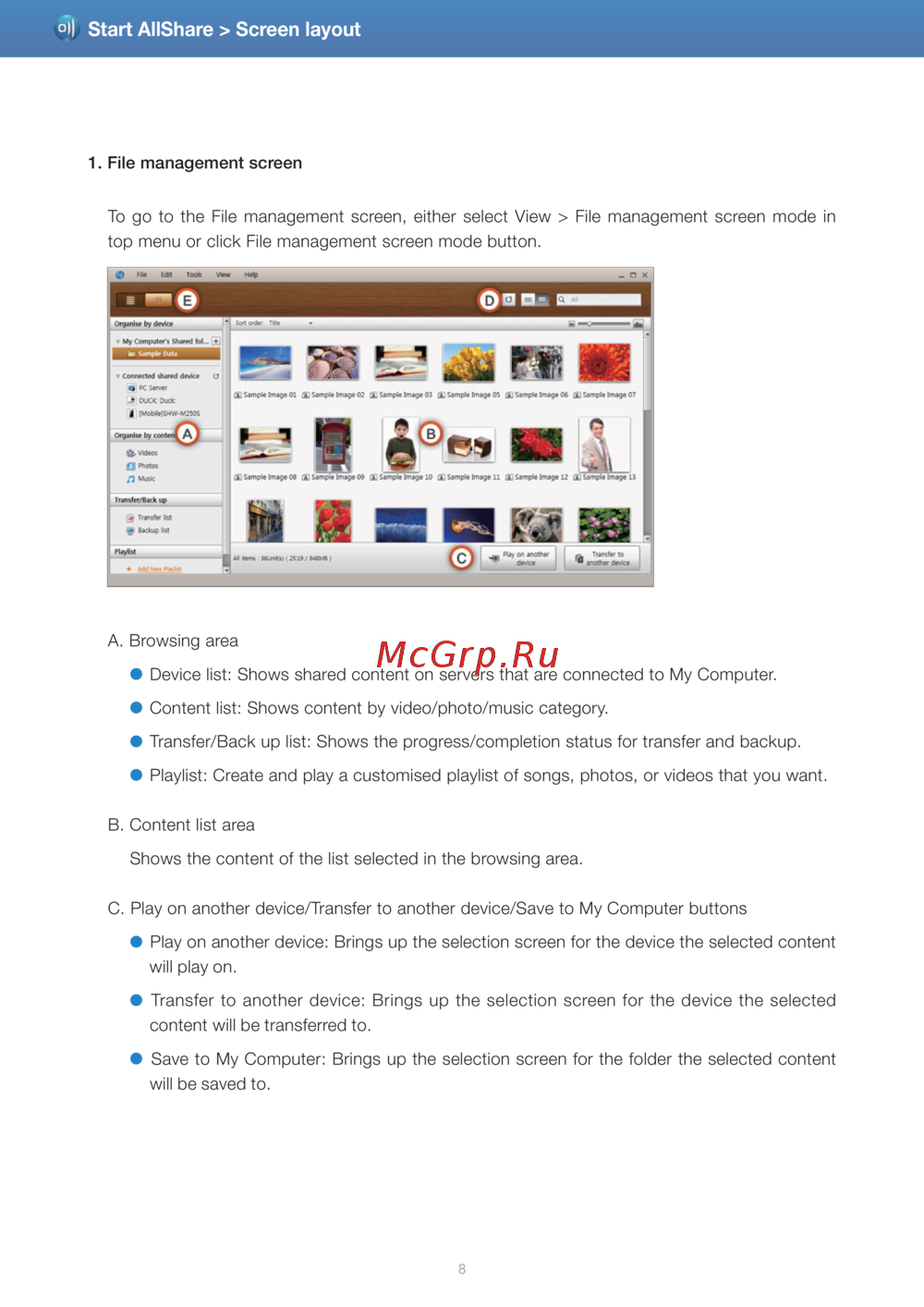 Samsung UE46ES7500S — управление файлами: Обзор и функции экрана управления [8/46]