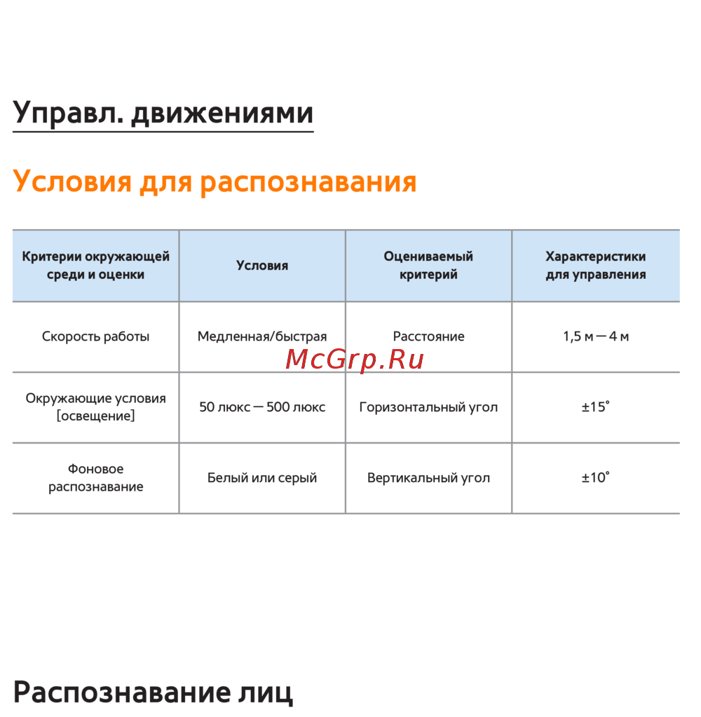 50 люкс ― 500 люкс Горизонтальный угол ±15˚
