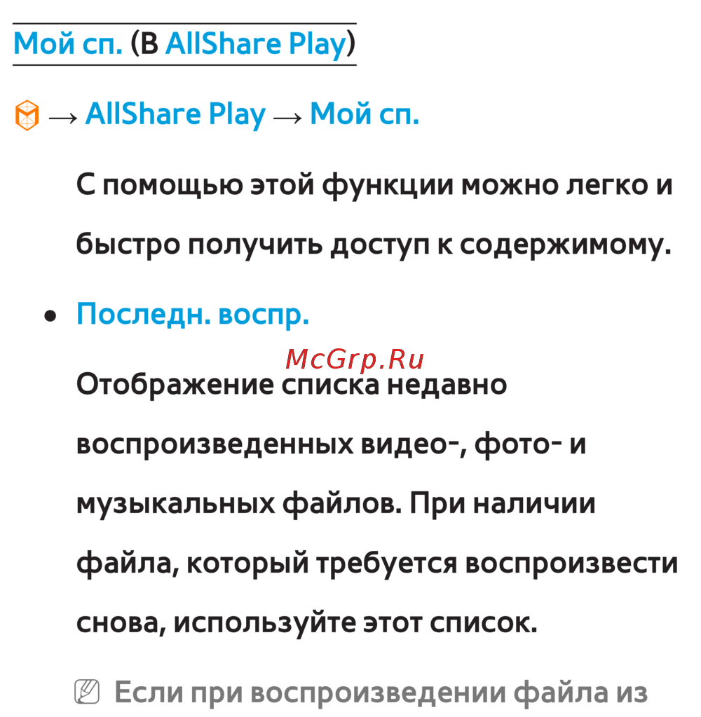 Мой сп. (В AllShare Play)