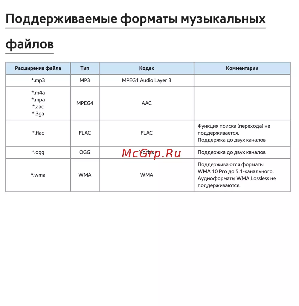 Samsung UE46ES7500S [970/1014] Поддерживаемые форматы музыкальных