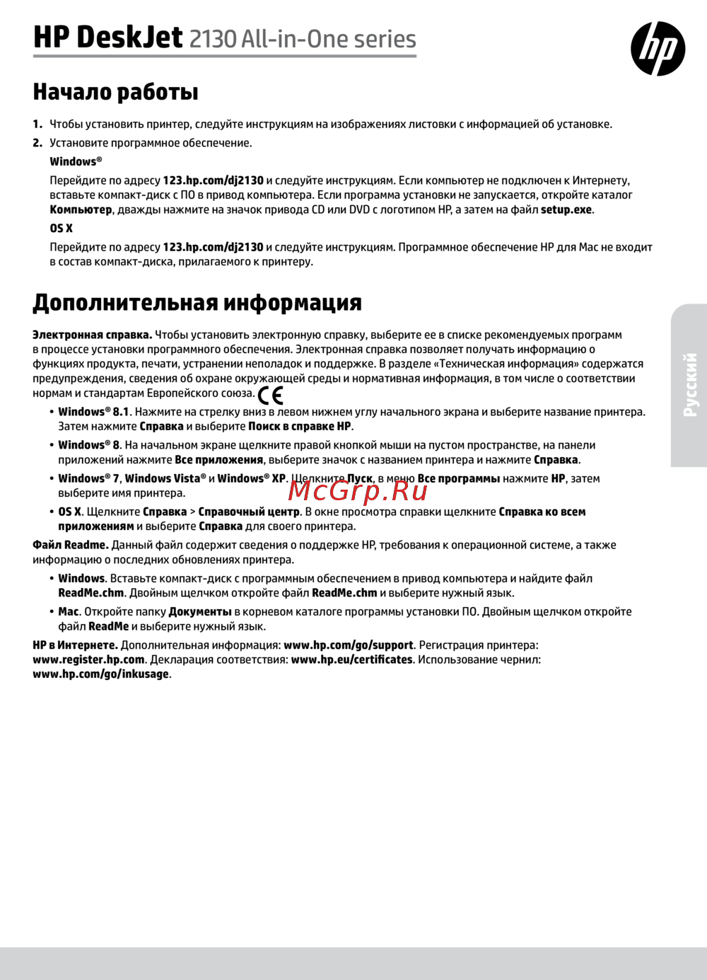 Перейдите по адресу 123.hp.com/dj2130 и следуйте инструкциям. Программное обеспечение HP для Mac не входит