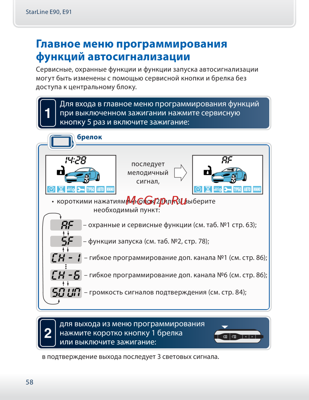 Starline E91 — программирование функций автосигнализации: руководство и советы [58/142]