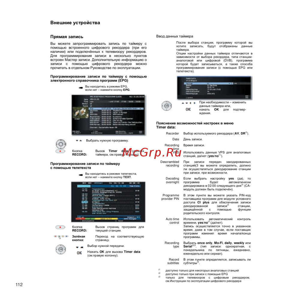 - Указаны в этом обзоре таймера вы можете также запрограммировать новые записи отметить другие программы и скопироват p.113