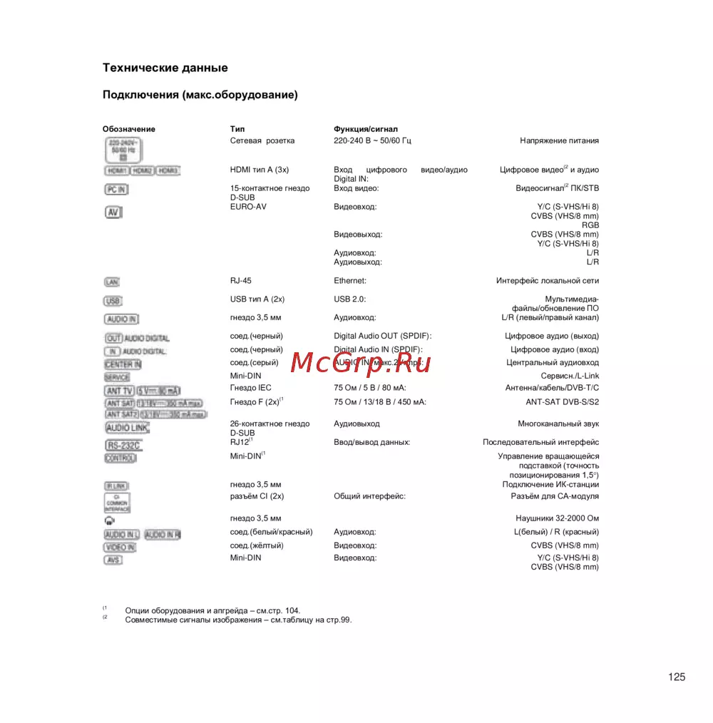 - Электрические характеристики сигналы поступающие по pc in hdmi p.124