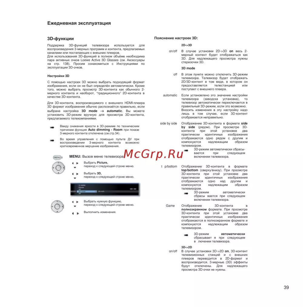 3-мерного контента отключена (см.стр.34).