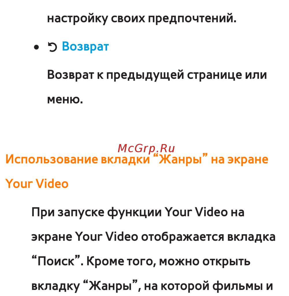 Использование вкладки “Жанры” на экране